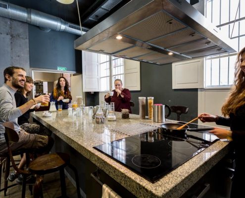 Moreover you can use a fully equipped kitchen, with fridge, microwaves, oven and hobs where you can cook your meals and learn how to prepare traditional Spanish food.